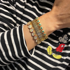 De grondstoffen die worden gebruikt in de JUJU-producten uit de collectie zijn brons, zilver, 14- en 18-karaats goud en andere halfedelstenen. Je kunt je JUJU's comfortabel dragen onder de douche en op zee. Hoe langer je ze beschermt tegen chemische invloeden zoals zwembadwater, parfum, crème en deodorant, hoe langer ze hun kleur en glans behouden.