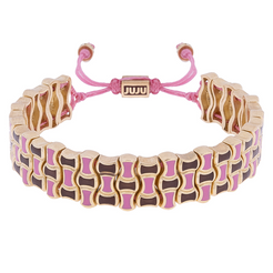De grondstoffen die worden gebruikt in de JUJU-producten uit de collectie zijn brons, zilver, 14- en 18-karaats goud en andere halfedelstenen. Je kunt je JUJU's comfortabel dragen onder de douche en op zee. Hoe langer je ze beschermt tegen chemische invloeden zoals zwembadwater, parfum, crème en deodorant, hoe langer ze hun kleur en glans behouden.