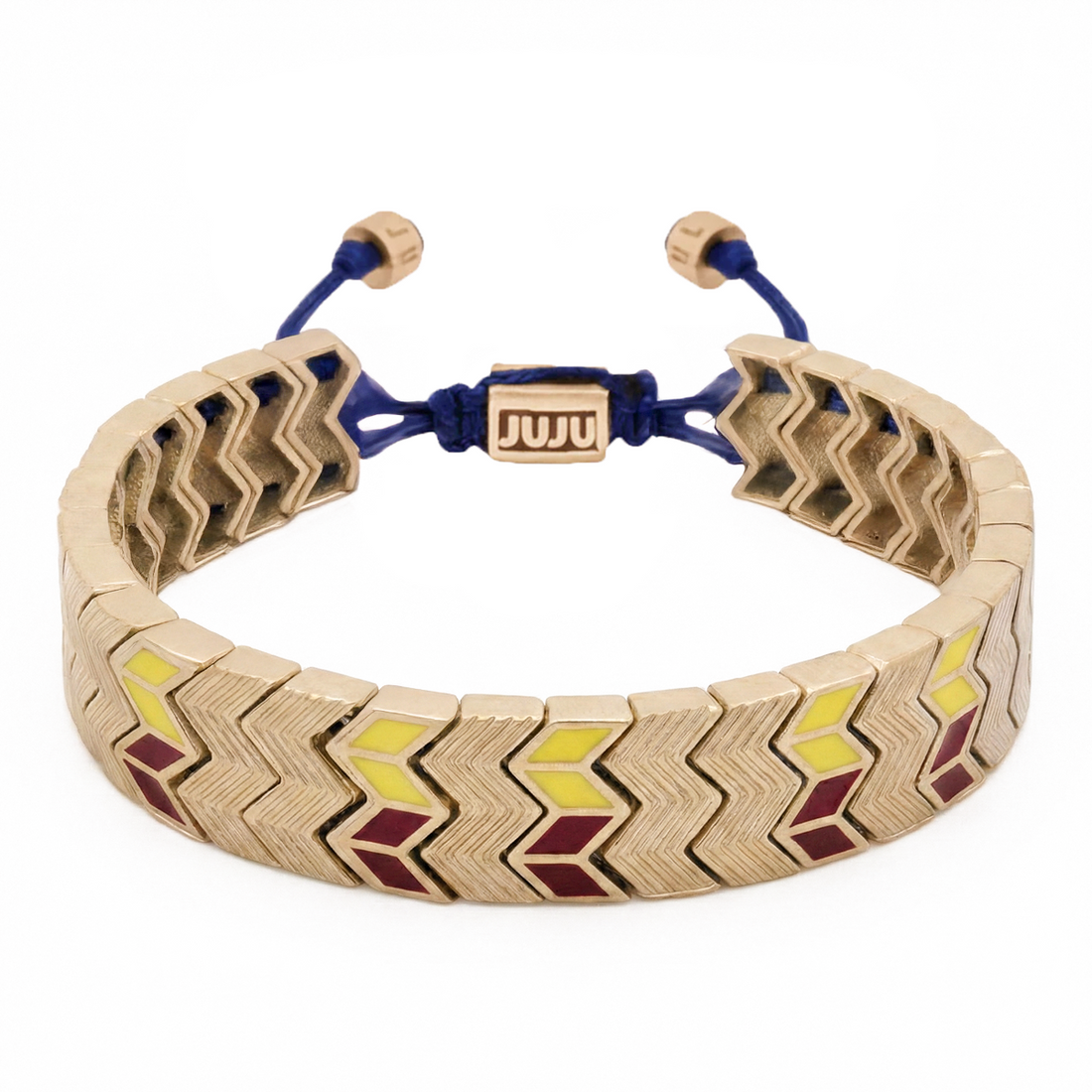 De grondstoffen die worden gebruikt in de JUJU-producten uit de collectie zijn brons, zilver, 14- en 18-karaats goud en andere halfedelstenen. Je kunt je JUJU's comfortabel dragen onder de douche en op zee. Hoe langer je ze beschermt tegen chemische invloeden zoals zwembadwater, parfum, crème en deodorant, hoe langer ze hun kleur en glans behouden.